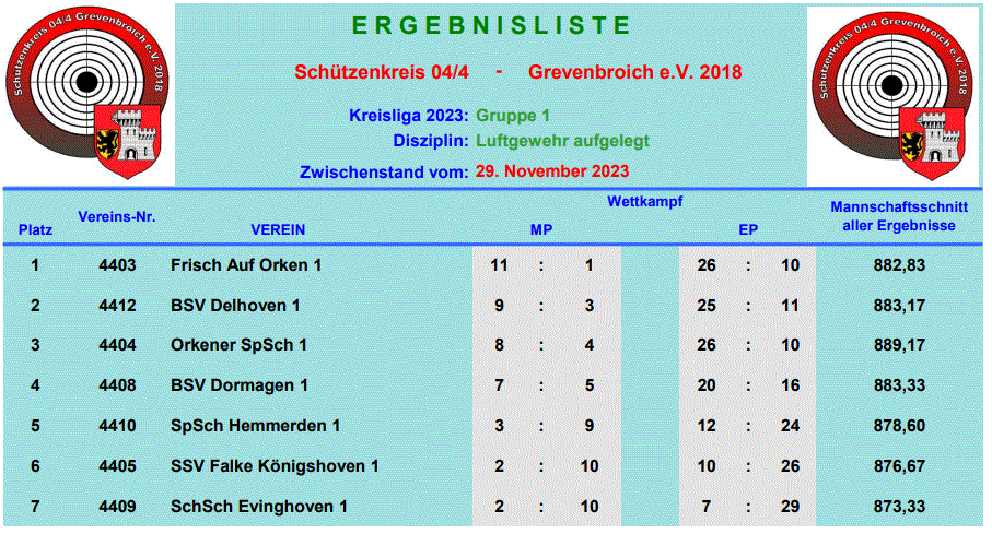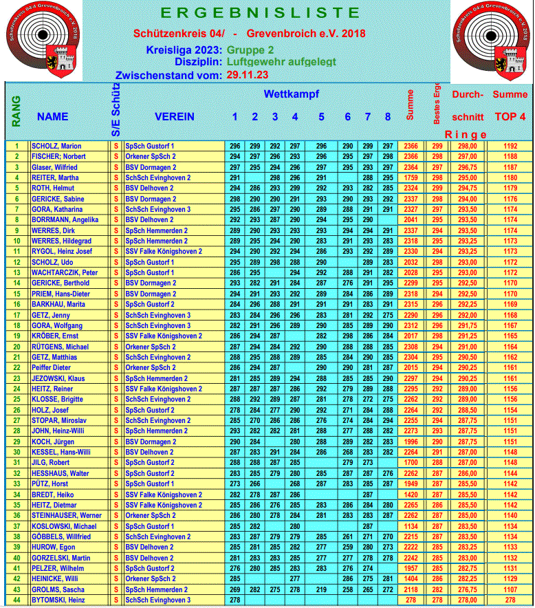 Ergebnisse Kreisliga 044 Wettkämpfe 2023
