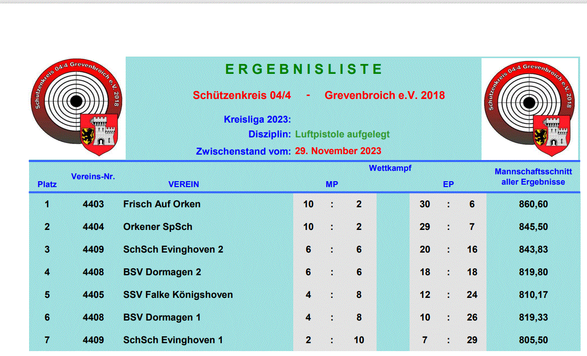 Ergebnis Luftpistole-Auflage 2023, Mannschaftswertung